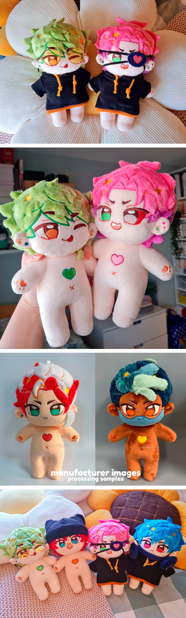 Please note that these are approximate dates. Please visit my Twitter account (@sirukki_art) for all the latest updates on the plushies shipments. Shipments have been delayed due to a customs hold.